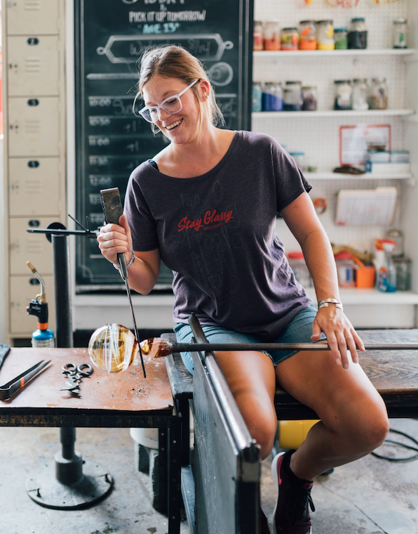 Haley Jelinek is a glass artist based in Asheville, North Carolina. She earned her Bachelor of Fine Arts degree from Alfred University in 2014, specializing in glass and sculpture. For the past seven years, she has worked as a full-time glassblower, creating in multiple studios throughout western Carolina.