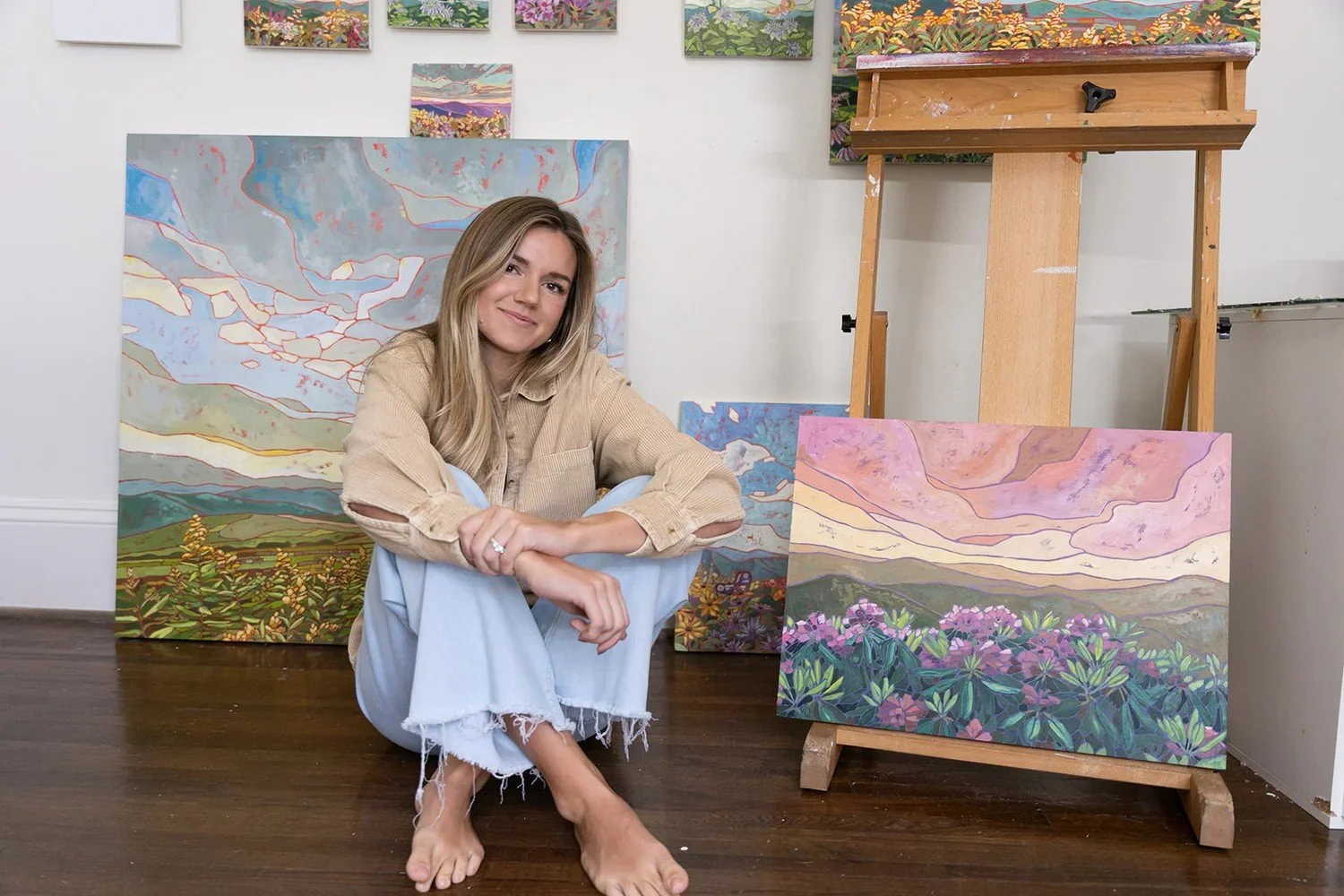 Mary Benson grew up in Winston-Salem, North Carolina, spending countless afternoons at the kitchen table painting alongside her sister. That early exposure to creativity sparked a lifelong passion for art, which she later pursued while studying at Clemson University. She now lives in Charlotte, North Carolina with her husband, Cliff, and their dog, Gus.